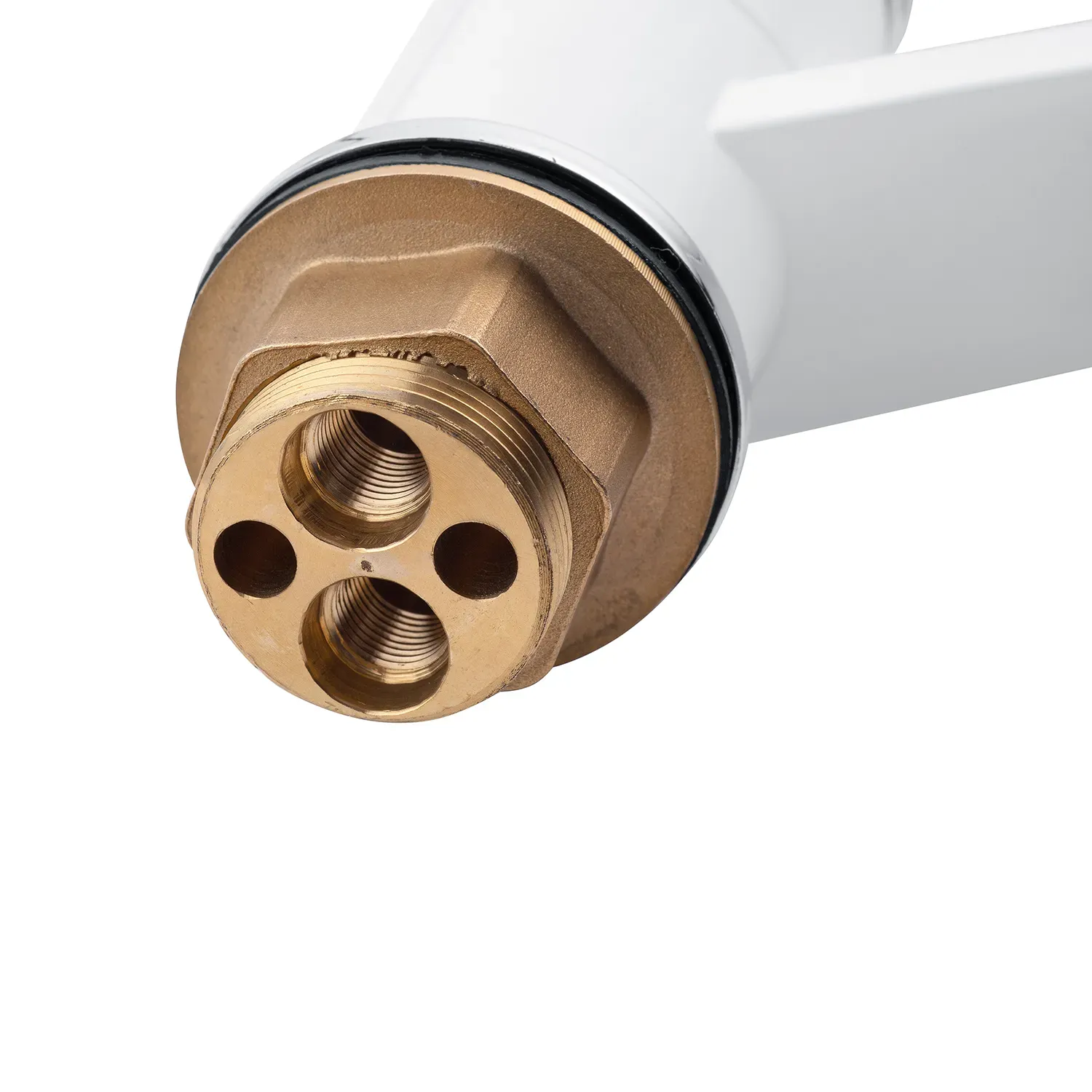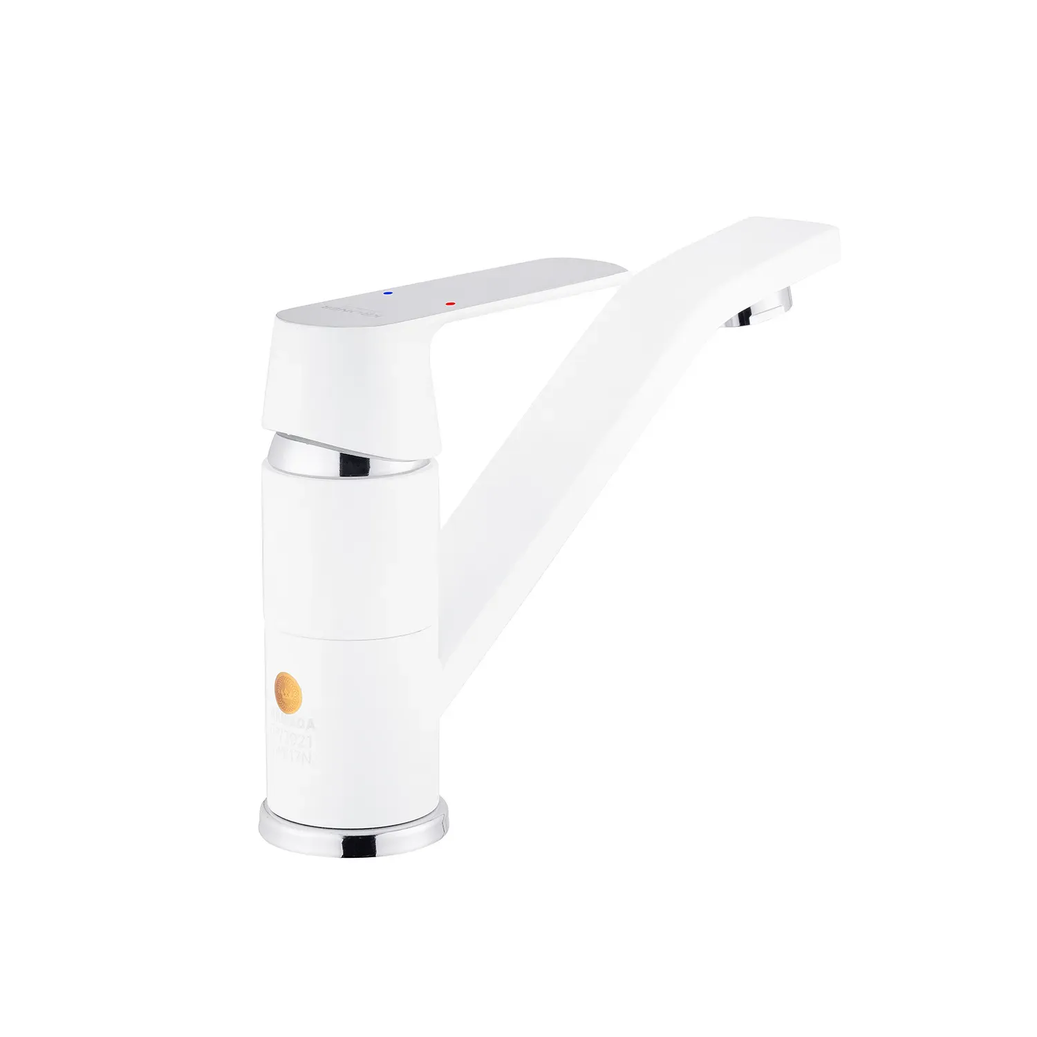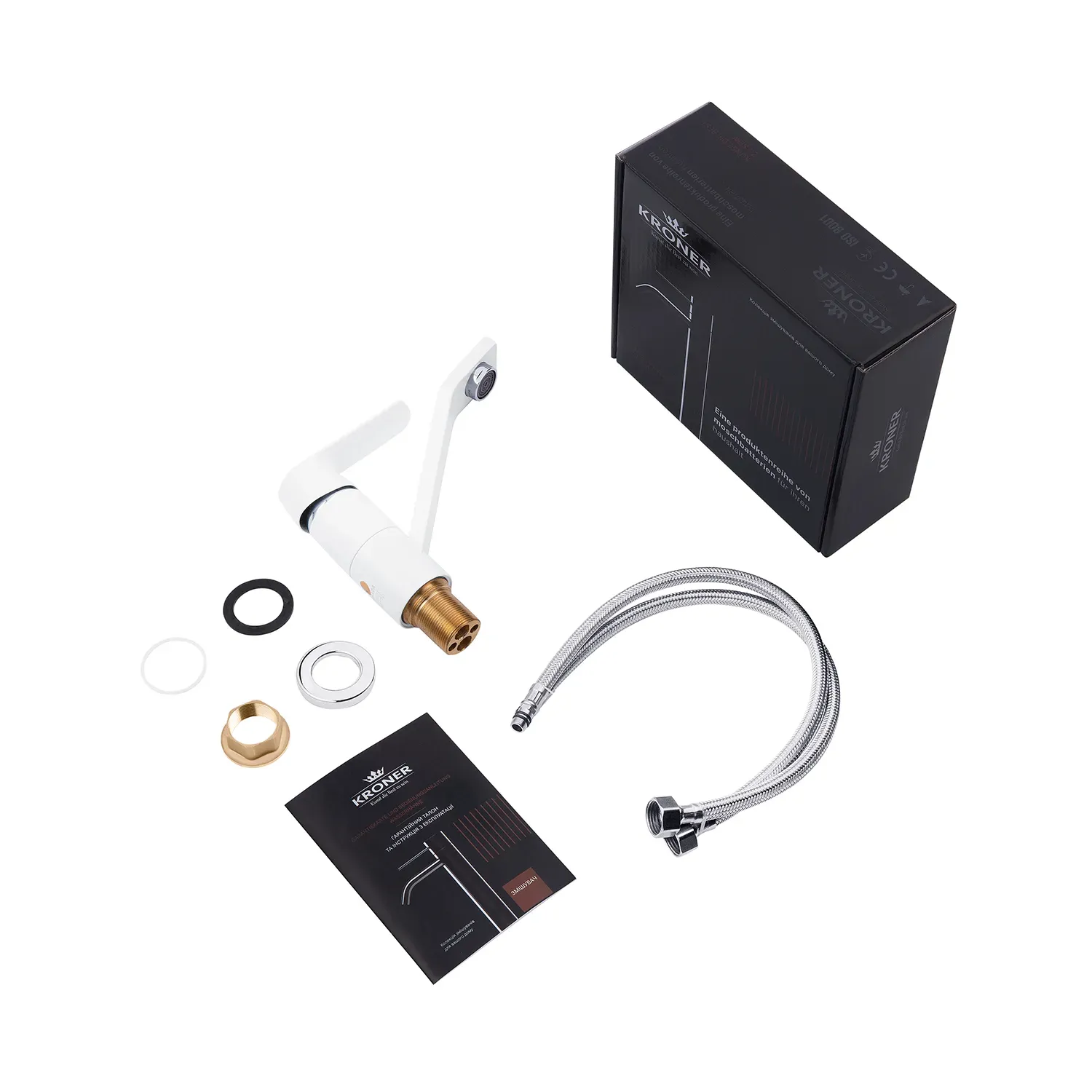 Смеситель для раковины Kroner KRP Armada – W011 – стильный и практичный выбор для вашей ванной комнаты. Изготовлен из высококачественной латуни, гарантирует долговечность и надежность. Привлекательный хромированно-белый цвет придает ему элегантность и современный вид. Картриджный механизм смешивания обеспечивает плавную регулировку температуры воды. Врезной способ монтажа позволяет сохранять эстетичный вид раковины, а глянцево-матовая поверхность придает изысканность и гарантирует легкую очистку. Смеситель Kroner – это стильный акцент, который придаст вашему дизайну особую гармонию и роскошь.