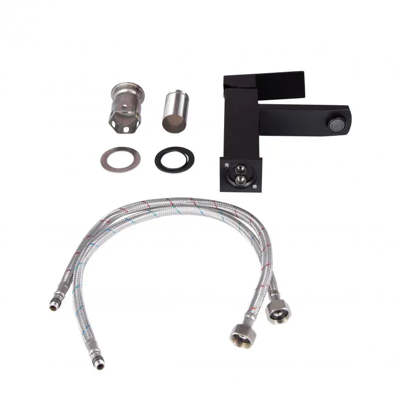 Смеситель для раковины Lidz Kubis 001F LDKUB001FBLA43376 изготовлен из нержавеющей стали, которая не подвержена коррозии, устойчива к ударам и трещинам. Черная матовая поверхность придает смесителю оригинальный внешний вид. Интенсивность водного потока и температура регулируются с помощью перемещения рычага. Подключение воды происходит через гибкие шланги с диаметром подключения 1/2", которые входят в комплект поставки.