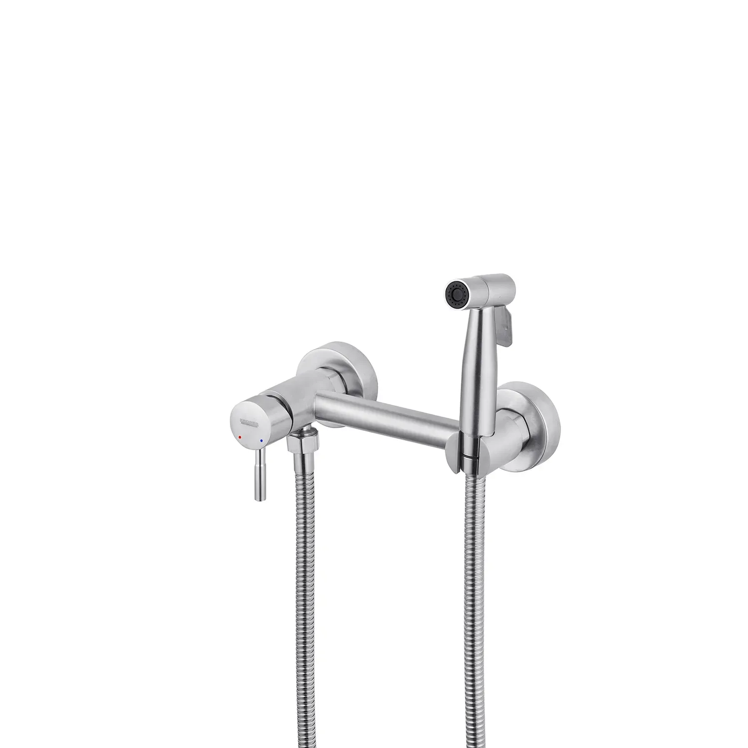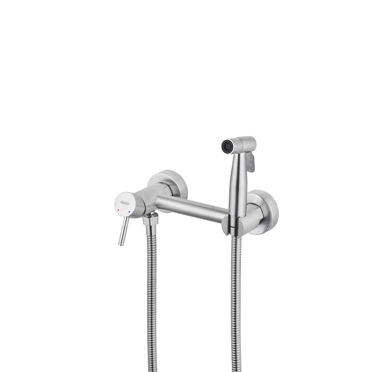 Гигиенический душ Kroner KRP Edelstahl Klassisch – ESG052 отличный вариант для реализации функции биде даже в небольшом санузле. Корпус изготовлен из пищевой нержавеющей стали SUS 304, что обеспечивает долговечность и безопасность эксплуатации изделия. Смеситель оснащен керамическим картриджем диаметром 25 мм, что обеспечивает плавную регулировку температуры и напора с помощью рычага. В комплекте имеется ручная воронка с нажатием, а также все необходимое для настенного монтажа.
