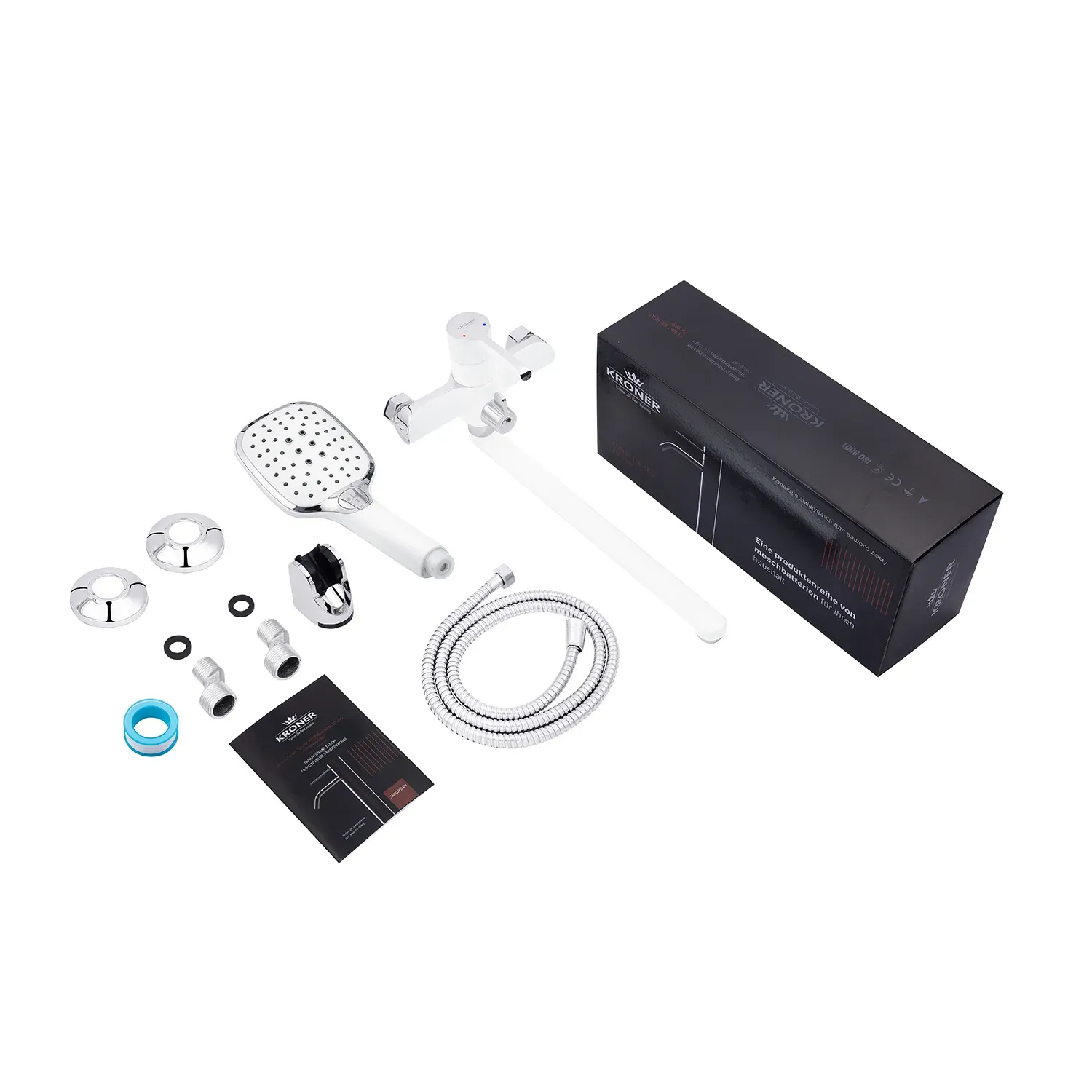 Смеситель для ванны Kroner KRP Essen – W070 – элегантное сочетание стиля и функциональности. Изготовлен из высококачественной латуни, гарантирует долгий срок службы. Вы можете выбрать между двумя стильными цветовыми вариантами: хромированным или белым. Этот смеситель имеет картриджный механизм смешения, позволяющий точно регулировать температуру воды. Прямоугольная форма воронки придает ему современный вид. Поверхность может быть глянцевой или матовой в зависимости от вашего выбора. Монтируется на стену, что экономит пространство. Смеситель Kroner станет изысканным дополнением для вашей ванной комнаты.