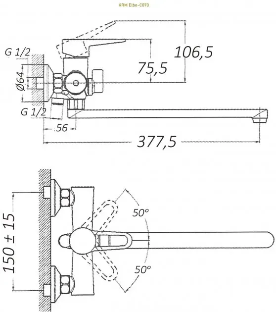 Смеситель для ванны Kroner KRM Elbe - C070 (к.35) длинный. нос