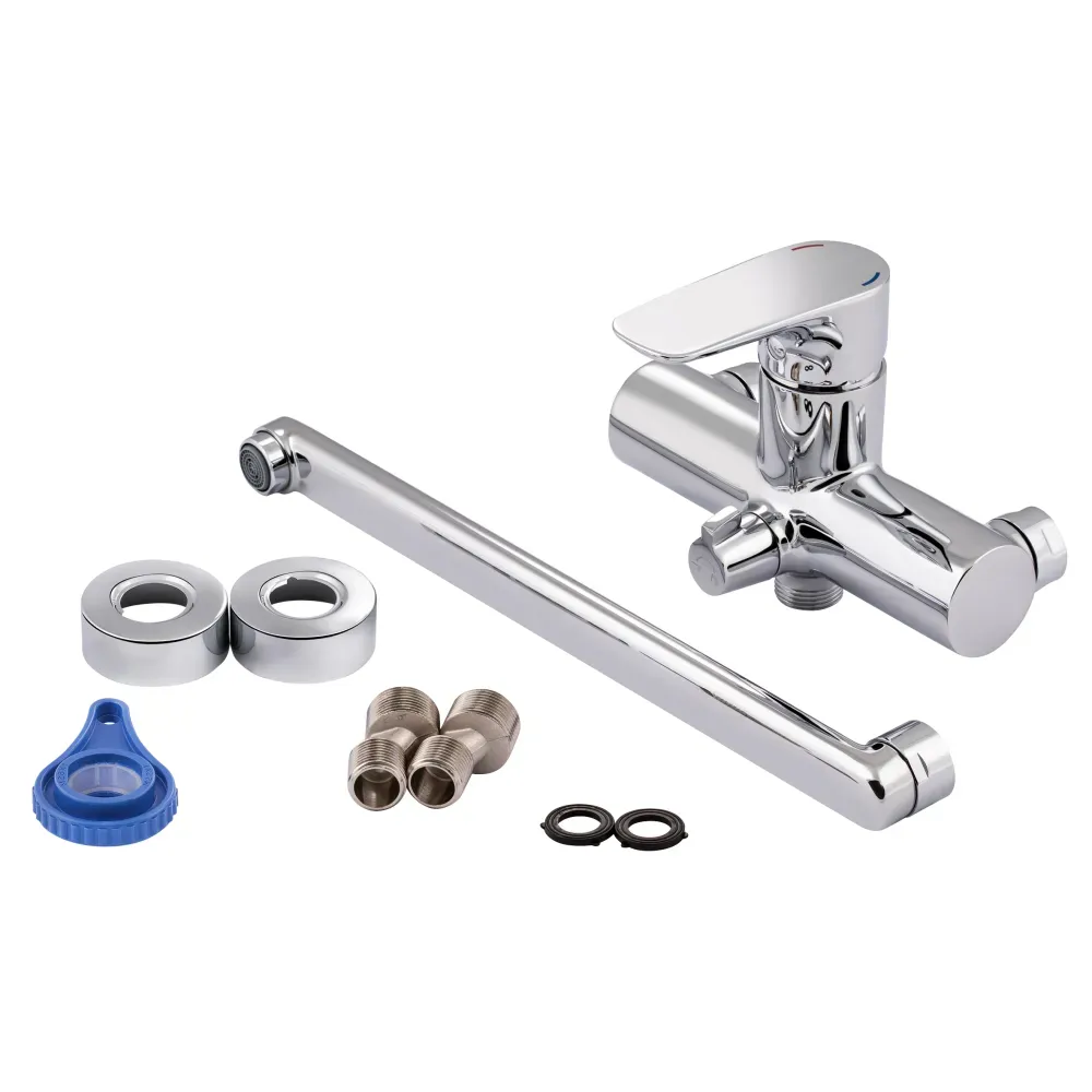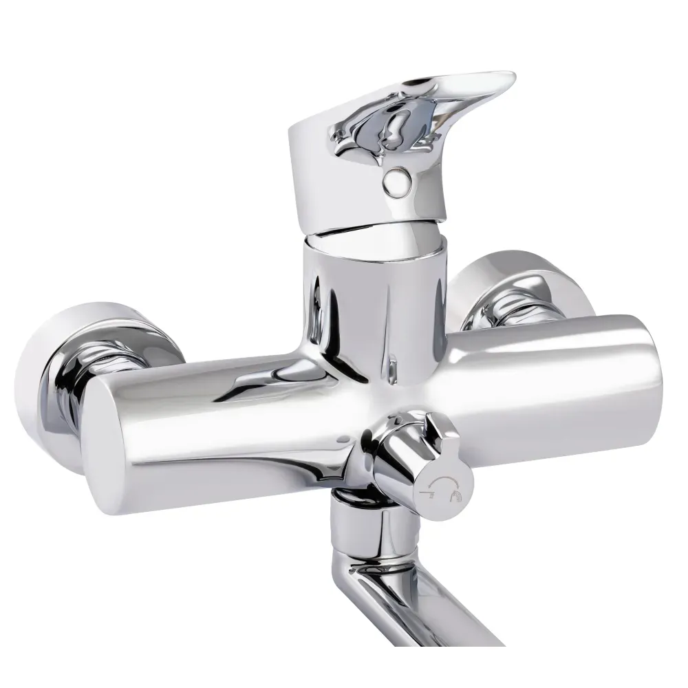 Смеситель для ванны Qtap Flaja 3210102GC изготовлен из прочной и износостойкой латуни с равномерным хромированным покрытием, благодаря которому изделие имеет привлекательный внешний вид и более устойчиво к механическим повреждениям. Управление потоком воды осуществляется при помощи удобного рычага, а переключение в душевой режим - поворотным дивертором. Благодаря длинному поворотному изливу смеситель можно использовать для обслуживания ванны и раковины, расположенных рядом.