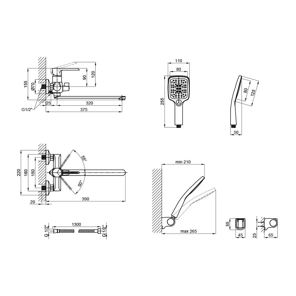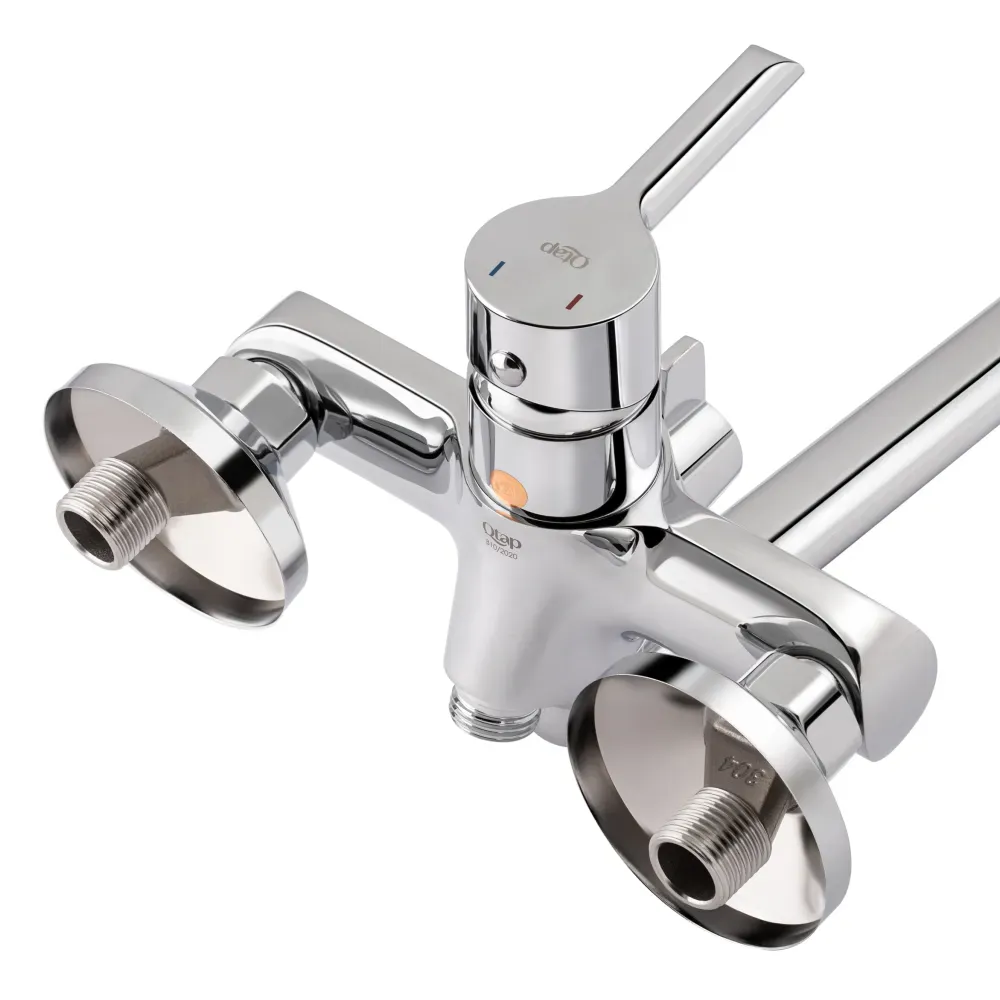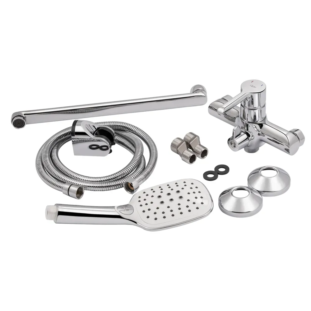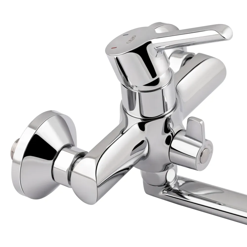 Смеситель для ванны Qtap Grand CRM 005 изготовлен из прочной и износостойкой латуни с равномерным хромированным покрытием, благодаря которому изделие имеет привлекательный внешний вид и более устойчиво к механическим повреждениям. В комплектацию входит лейка, держатель для душа и душевой шланг. Подача воды осуществляется при помощи удобного рычага, а переключение в душевой режим - дивертором.